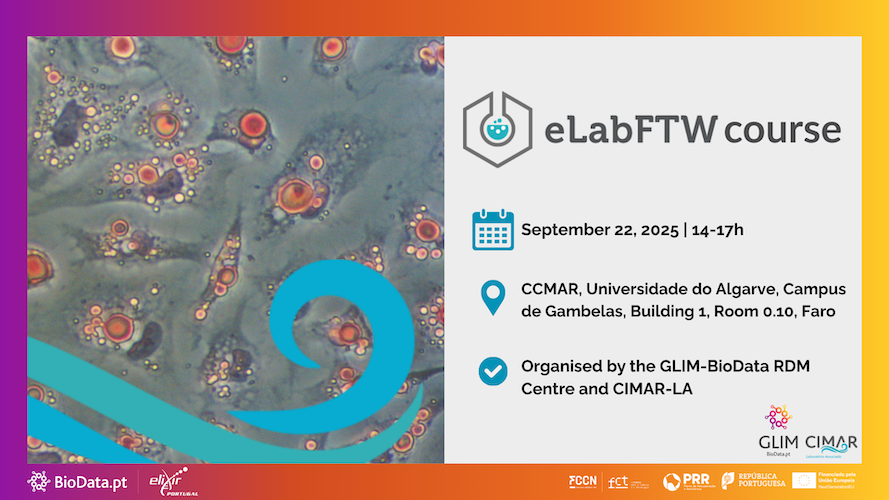 On September 22, 2025, the Research Data Management Centres GLIM-BioData and CIMAR-LA will host a hands-on training session on eLabFTW, the open-source electronic lab notebook and lab management system. The session will take place at CCMAR, Universidade do Algarve (Campus de Gambelas, Edifício 1, Sala 0.10, Faro), and is aimed at researchers, lab technicians, and data managers. We’ll cover key eLabFTW features—experiment documentation, inventory management, and team collaboration tools—to help you adopt best practices in data management and reproducibility.